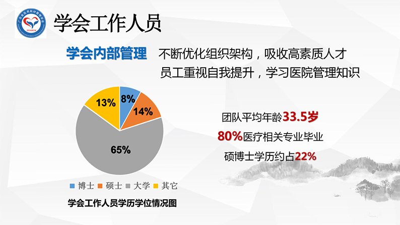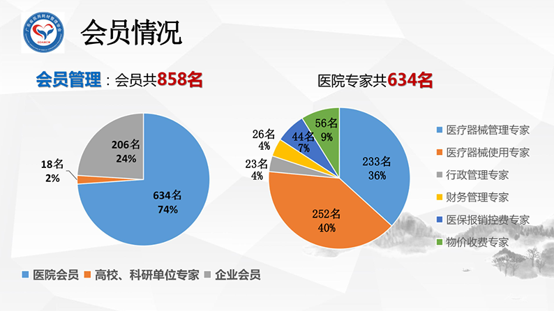 三是拥有近千名会员:学会会员遍布全国各地,会员类型包括单位会员和个人会员,其中广东省200多家医院的个人会员,涵盖卫生部属医院、省属医院、地级市医院和县级医院等,企业单位会员有强生、碧迪、美敦力等大型外企,以及广州医药、国控广州、威高等国内知名企业。