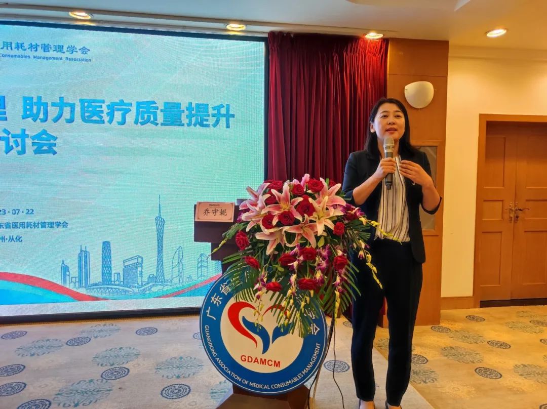 会议伊始,广东省医用耗材管理学会李慧诚副会长为会议致辞。李慧诚副会长首先表达了对参会人员的欢迎与感谢,强调了做好医用耗材管理的重要意义,表达了广东省医用耗材管理学会通过创建交流平台、搭建业内沟通桥梁,助力医疗质量提升的决心。随后,美敦力冠脉及肾动脉交感神经消融业务运营部门大区销售高级经理乔守妮女士为会议致辞并表示对会议顺利召开的祝贺。