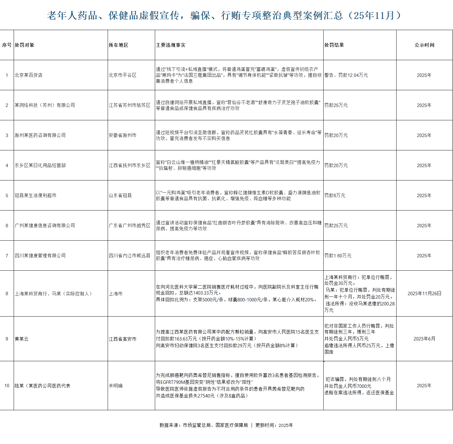 医疗行业处罚典型案例-11月